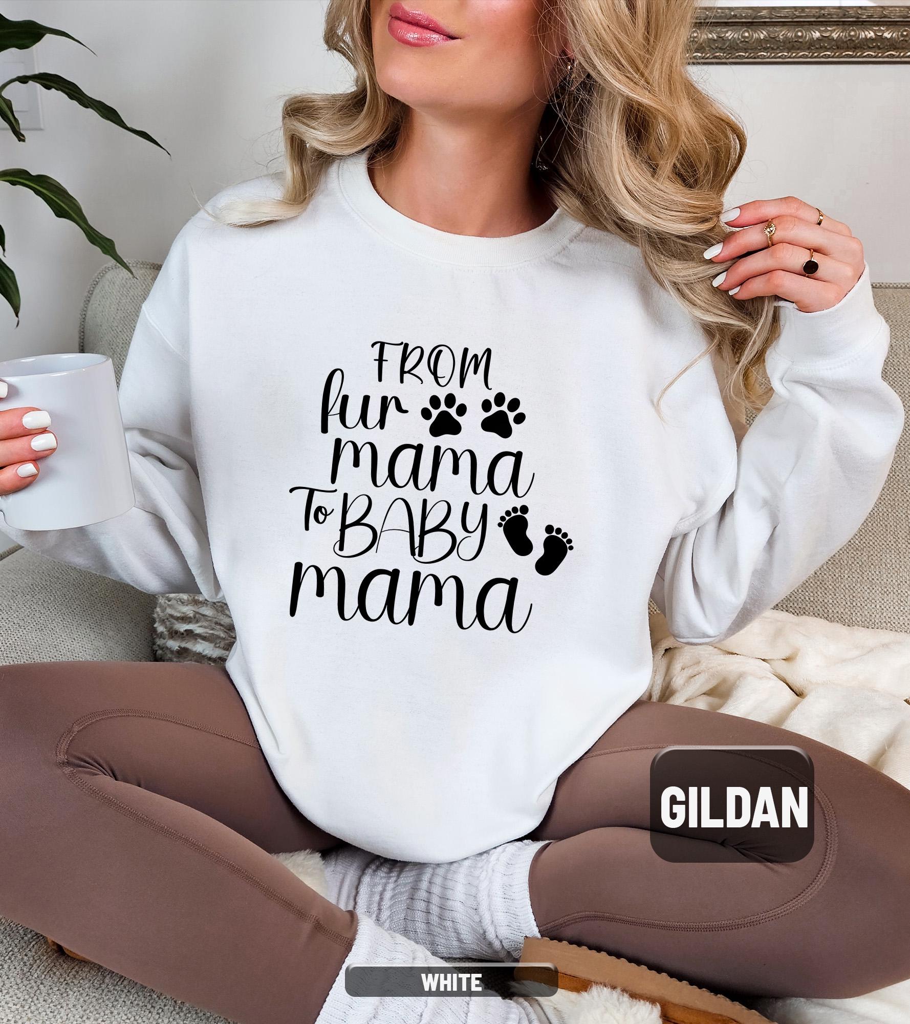 ✨✨From Fur Mama to Baby Mama Gildan 18000 Sweatshirt✨ Cozy Pregnancy Reveal Gift for Expecting Women, Aesthetic New Mom Outfit✨