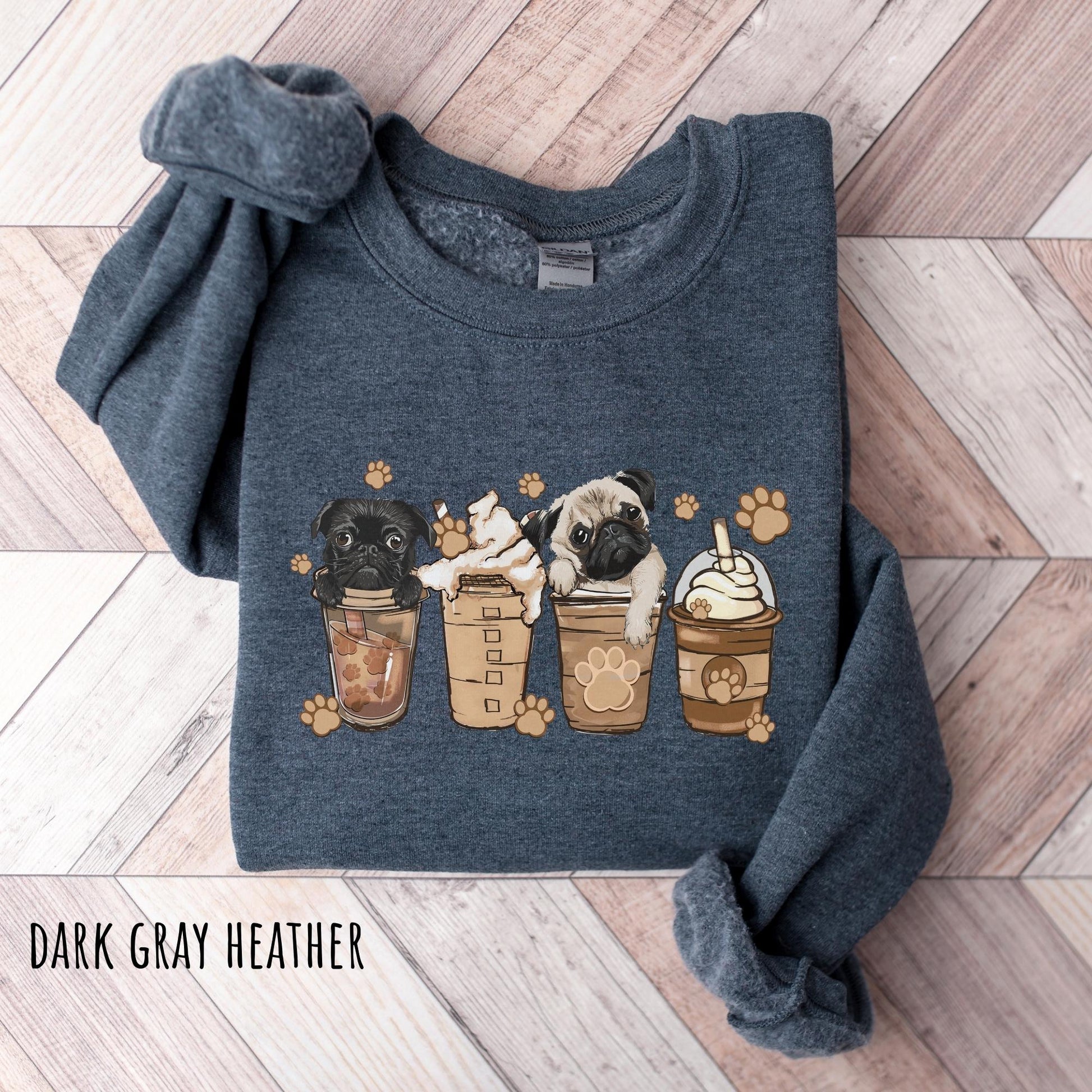 ✨✨Gildan 18000 Cute Pug Coffee Sweatshirt for Women✨ Cozy Unisex Gift, Trendy Animal Coffee Lover Shirt, Printify Choice✨