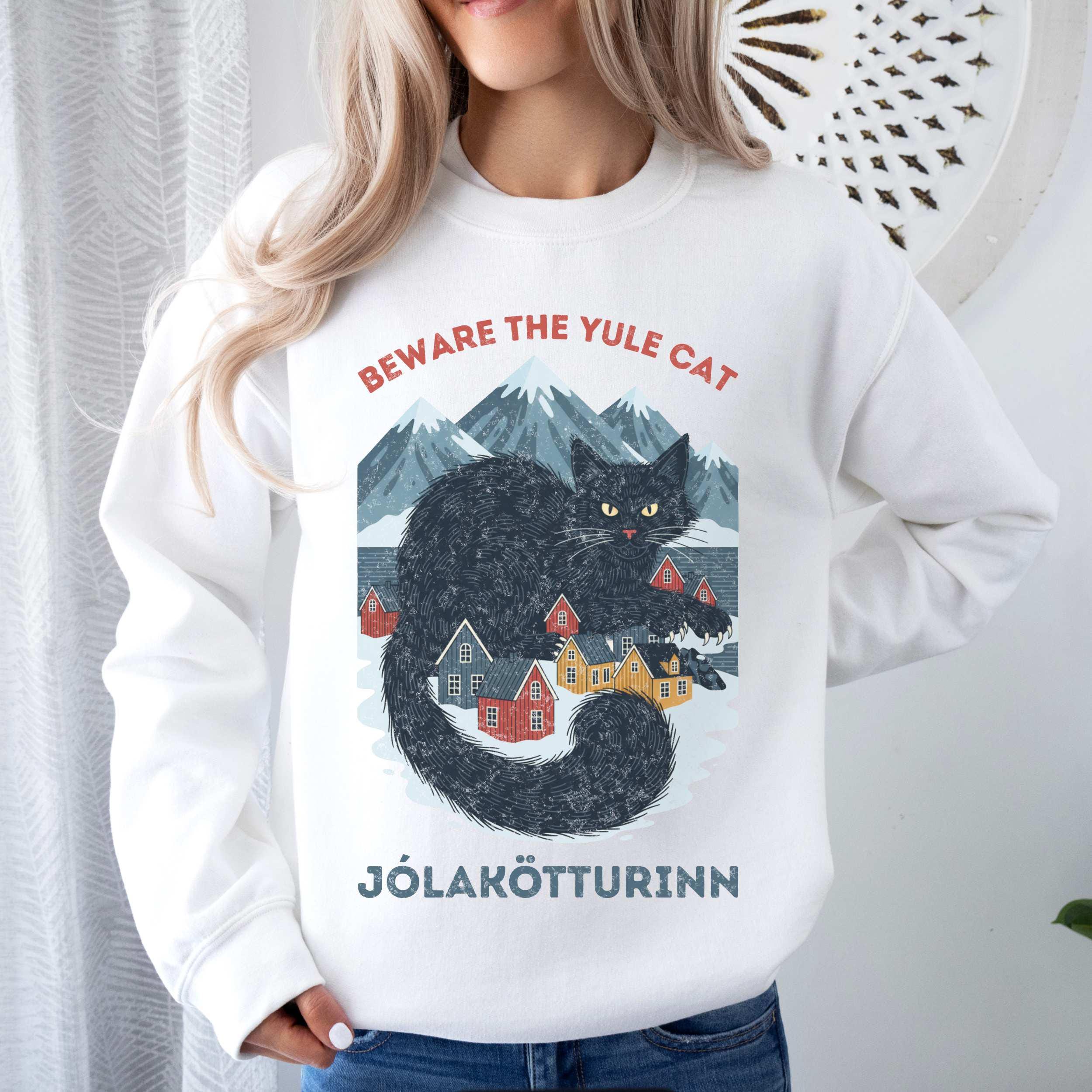 ✨Distressed Yule Cat Sweatshirt Gildan 18000 Crewneck Cozy Icelandic Christmas Gift Vintage Printify Choice for Men & Women✨